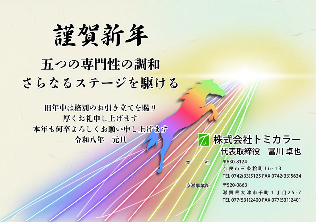 トミカラー社員一同無事新春を迎えられましたのは、ひとえに御厚情によるものと深く感謝致しております。本年も倍旧の御高配を伏してお願い申し上げます。